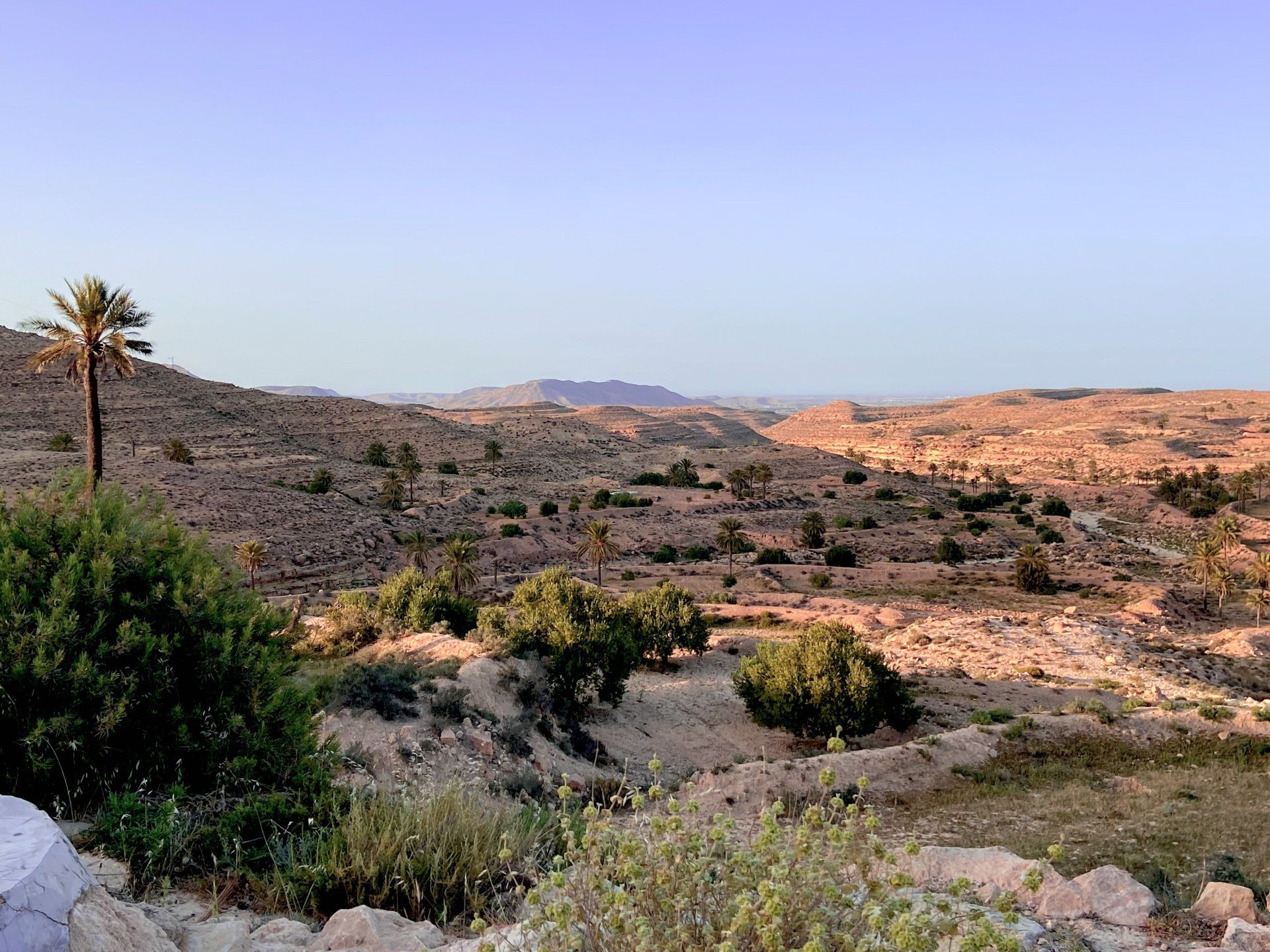 Assise sur les hauteurs du village, j’écoute, monter à moi, les bruits tamisés d’un quotidien centenaire, qui raisonnent sur les collines arides et les pierres de taille des maisons traditionnelles. Mon fils me rejoint, tout aussi fasciner que moi par la formidable atmosphère apaisante qui règne à cette heure du jour. Nous décidons de monter rapidement en haut de la colline pour profiter encore mieux de la vue plongeante sur le village et du magnifique coucher de soleil. Essoufflés, nous savourons les derniers rayons du soleil rythmer par la voix du muezzin et au loin des derniers troupeaux de moutons et de chèvres qui rentrent aux bergeries. S’offre à nous une vue à 360° sur Toujane à la pierre ocre saupoudrée du vert profond des palmiers et des jardins cultivés. Au loin, la mer, les ruines d’anciens Ksar, la voie romaine, les collines semi désertiques surplombant le village. Avec les dernières heures du jour, ressort l’ odeur des plantes aromatiques qui parsèment la montagne. Toujane est peut-être l’un des derniers villages berbères où l’on peut encore découvrir une vraie vie traditionnelle, habitats troglodytes, agriculture, artisanats. Toujane, c’est également l’amorce d’une économie solidaire sous l’impulsion de quelques habitants du village, dont Béchir Hasnaoui qui se bat pour que perdure les traditions artisanales, huileries, habitats troglodytes, « margoume » aux motifs traditionnels Amazygh. Car malheureusement, bien qu’encore préservé d’un tourisme de masse destructeur et d’un appel trop violent à la modernité, les jeunes du village commencent à se désintéresser des traditions et aspirent à une accession à la vie plus confortable, plus agréable (vue de loin) des grandes villes. Le paradoxe c’est que Toujane a su garder tout ce que beaucoup d’entre nous, habitués à la modernité, sensibles à l’écologie et à la préservation de l’environnement, soucieux de l’importance des équilibres sociaux, recherchent aujourd’hui. Une agriculture, utilisant des semis traditionnels et respectueuse de l’environnement, un habitat écologique, (maisons troglodytes) pleinement adapter à son climat été comme hiver sans l’utilisation de climatisation aussi gourmande en énergie que dévastatrice d’un point de vue environnementale, un tourisme raisonné et équitable qui permet de s’immiscer dans une vie locale sans la détruire, une économie solidaire basée sur l’entraide locale et enfin une nature et des paysages à couper le souffle moyennant un peu d’effort physique pour les découvrir.